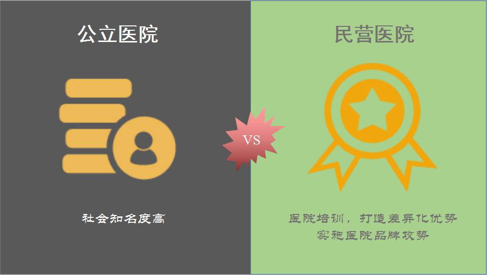 要培养自己的核心竞争力,首先看下面几组图了解公立医院和民营医院的区别在哪里: