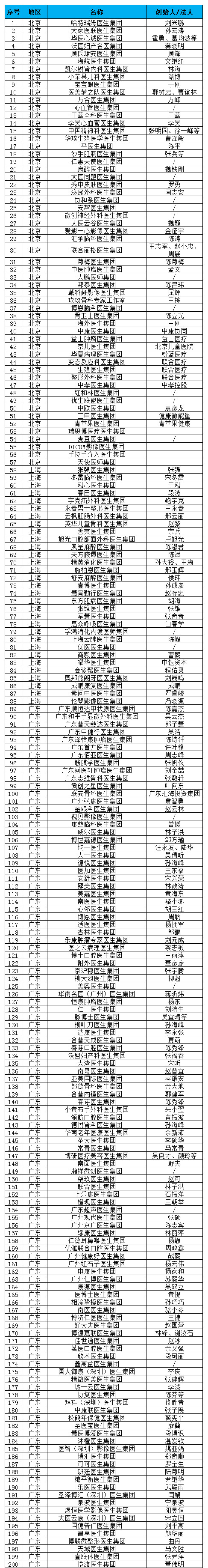 以下为看医界整理的医生集团名单汇总,是根据媒体公开报道、工商注册等多渠道的资料整理,一些新成立的医生集团等可能并未统计,欢迎留言补充。